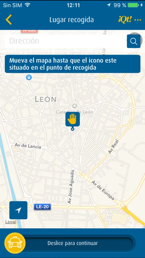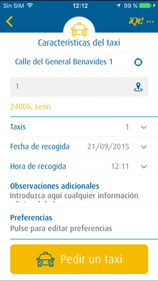 La aplicación te permite seleccionar tu posición en el mapa, indicar calle y punto de referencia cercano y solicitar tu taxi en el momento o bien hacer una reserva en el mismo día o para días posteriores.