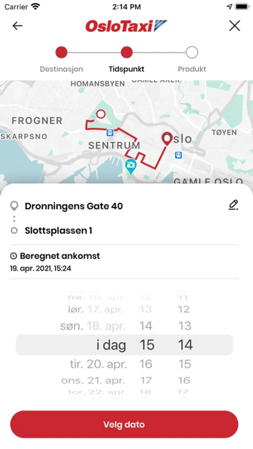 • Når bilen er på vei til deg, kan du ved behov velge å ringe sjåføren direkte