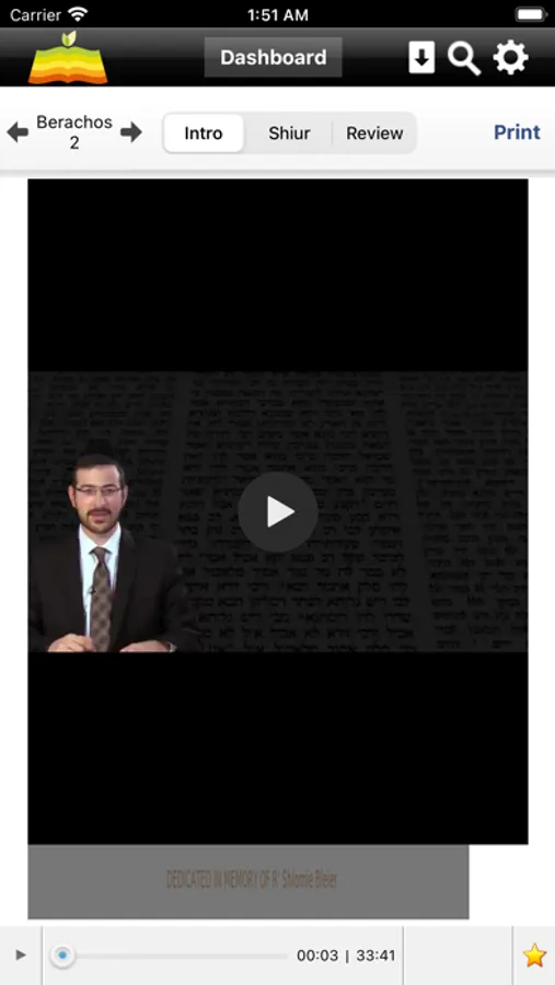 · A video of a talented Magid Shiur presenting an Overview of each Daf, a full Daf Shiur, and a Review of each Daf.