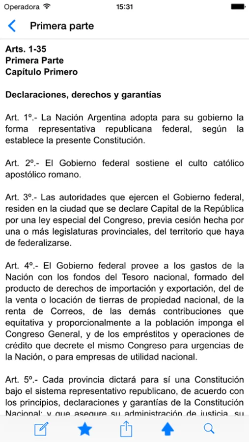 En la versión de la Constitución para el iPhone/iPad/iPod puede: correo electrónico con los títulos de la Constitución, editar y crear notas, añadir títulos a los Favoritos, controlar el tamaño y tipos de la fuente y utilice el micrófono para grabar notas acerca de los estudios;