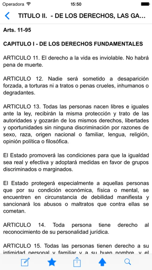 En la versión de la Constitución para el iPhone/iPad/iPod puede: correo electrónico con los títulos de la Constitución, editar y crear notas, añadir títulos a los Favoritos, controlar el tamaño y tipos de la fuente.