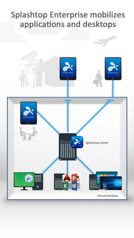 Splashtop Enterprise is a much simpler, higher performing, and cost-effective alternative to Citrix. It enables IT departments to deliver corporate apps and desktops (physical and virtual) to tablets, smartphones, PCs, Macs, and thin clients. It supports Microsoft and VDI infrastructures including RDP / RDS / Remoteapp / Terminal Services, VMWare, Vsphere, and Citrix Xenserver. Splashtop eliminates the complexity and expense of mobilizing all of your hard-to-access apps. Zero Coding. Zero Training. Complete Control. Superior Performance.