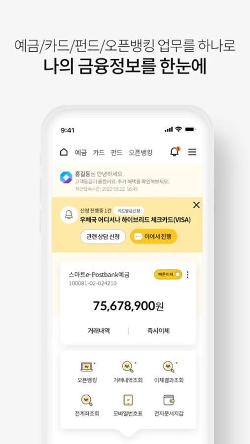 우체국뱅킹을 통해 언제 어디서나 빠르고 편리한 우체국금융 서비스를 이용하실 수 있습니다