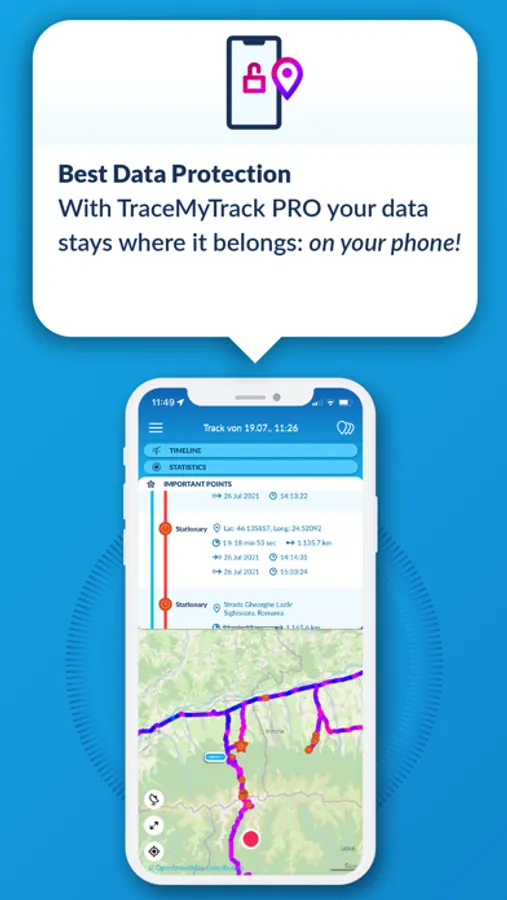 With TraceMyTrack LITE your data stays where it belongs: on your phone!