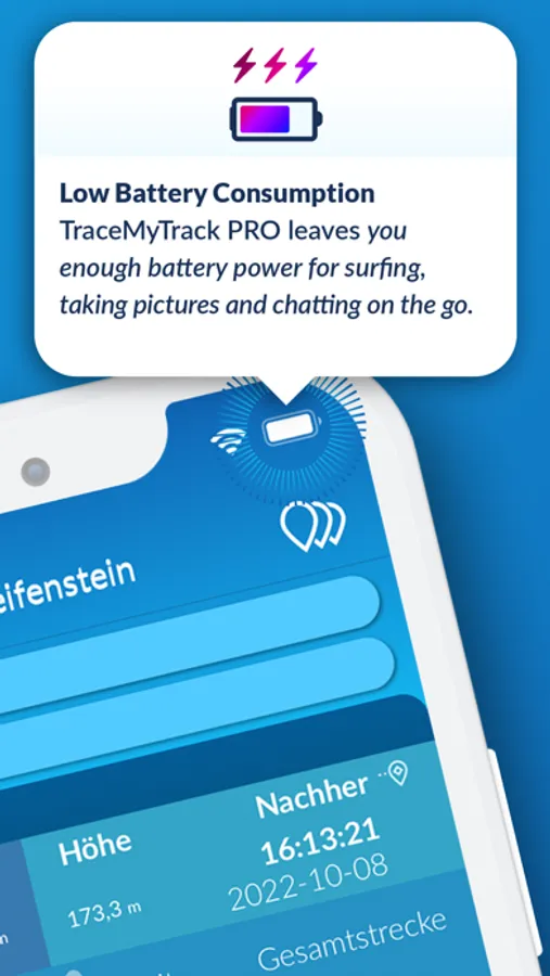 TraceMyTrack LITE leaves you enough battery to surf, take photos and chat on the go.