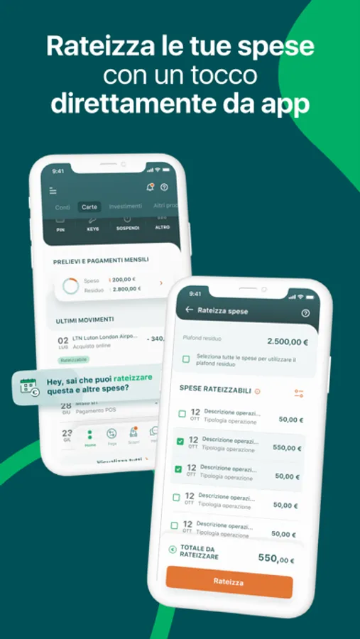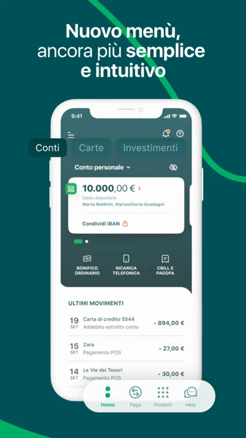 Per te a portata di smartphone conti, carte, prestiti, mutui e investimenti. Ti bastano pochi tap per fare bonifici (anche istantanei!), ricariche prepagate e telefoniche. Paghi anche il tuo bollo auto e i bollettini, che puoi inquadrare con la fotocamera per darti un’esperienza veloce e intuitiva.