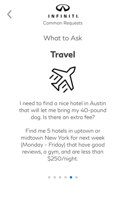 Not sure what to ask? INFINITI Personal Assistant can do almost anything you desire, including: