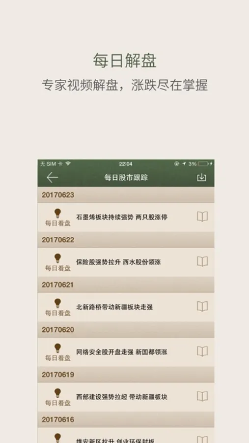 1:每天实时更新:12年经验的同花顺金融研究中心的特聘讲师们,每天视频解盘、分析当前股市热点,并提供每日一招经验传授: