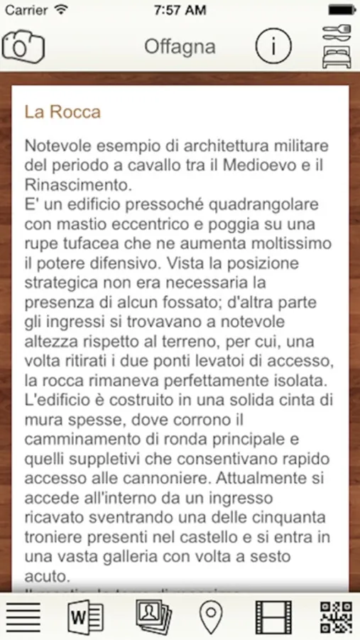 All'interno dell'applicazione avrai a disposizione un pulsante con il quale “leggere”, sfruttando la fotocamera dell'iPhone, il codice QR presente in prossimità di ogni monumento o luogo di interesse del borgo.