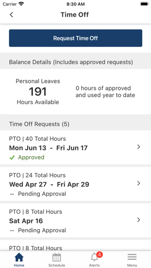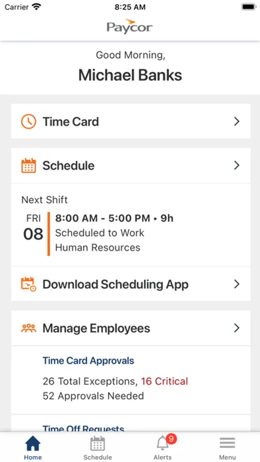 Push notification support for new pay stubs, time off requests, time off approvals, tasks, and notifications
