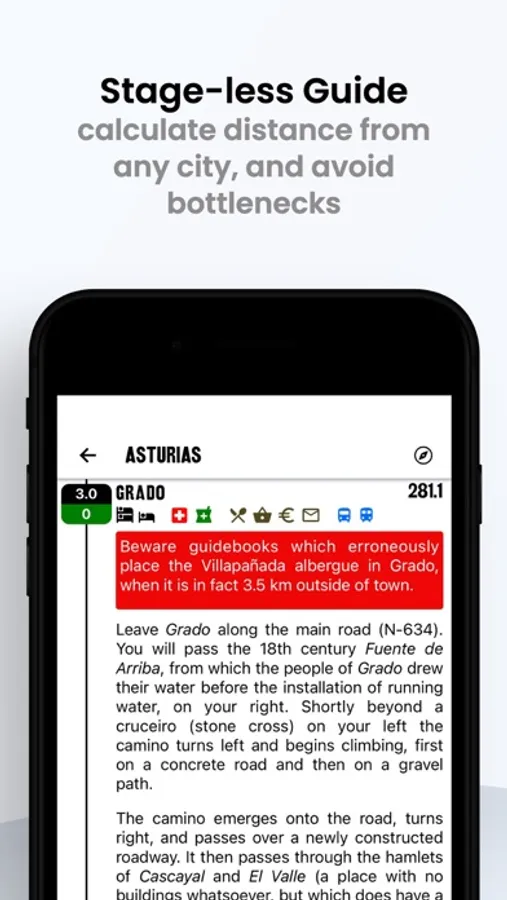 This guide covers the Camino Primitivo, the original route across northern Spain. It has been redesigned and now works almost exclusively offline (to share your comments with others will require a data connection). As more an more albergues share their WiFi this becomes less of an issue, and the guide will tell you which ones offer WiFi.