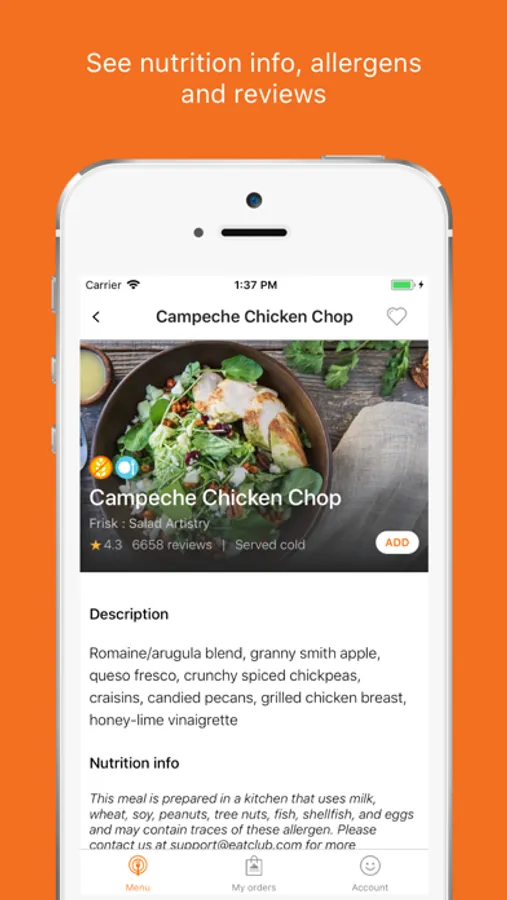 EAT Club is a company sponsored meal program bringing individually ordered and individually packaged food right to your office. Sign up for our platform via invitation from your employer and select your meals for the same day or a week in advance.