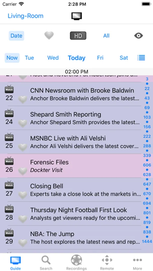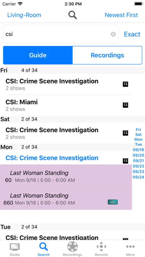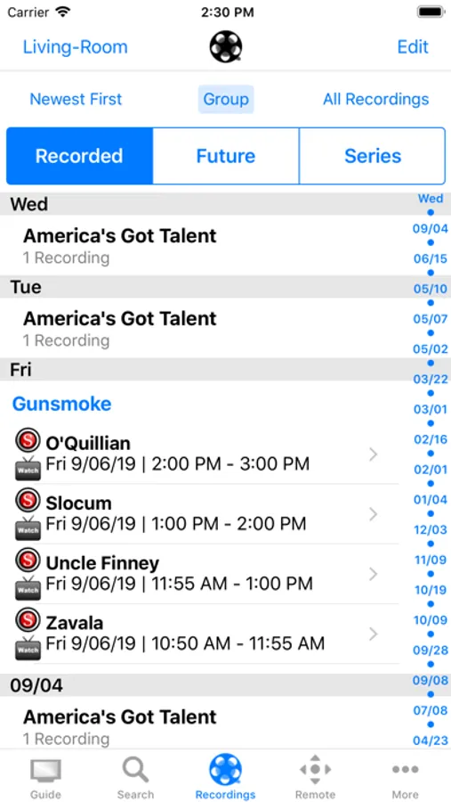 * Manage all DVR recordings including scheduling a one-time or series, deleting existing, viewing currently recording, and organizing in folders.