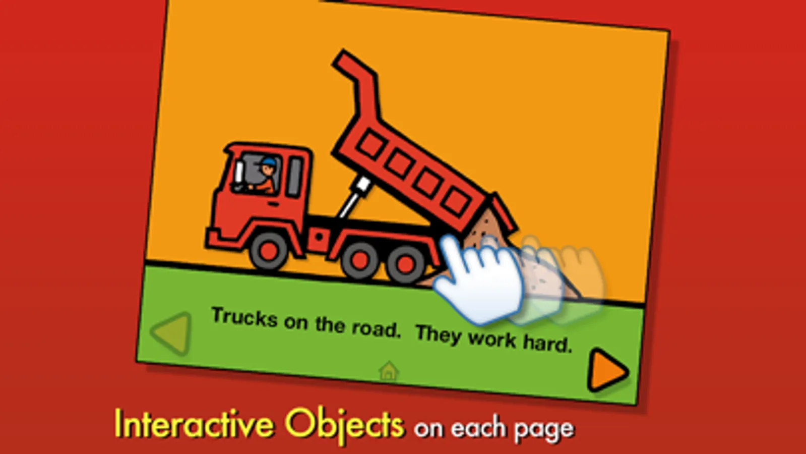 Play with tow trucks, cement trucks, newspaper delivery trucks and many other types of trucks in this exciting book app for new readers! Explore pictures, learn new vocabulary, and personalize the story with your own narration. Complete with moveable objects and brightly colored illustrations, learning is fun with Byron Barton's "Trucks"!