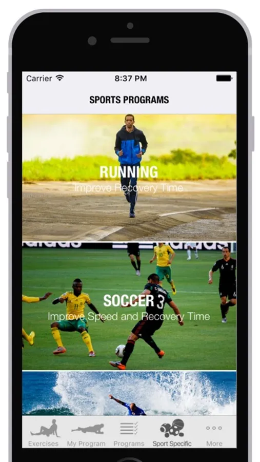 Foam Rolling App provides a large range of programs designed specifically for specific sports to help improve performance and reduce injuries through injury prevention. You will find programs for the following sports: