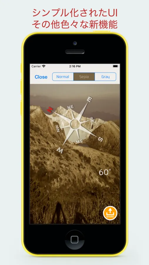 You will use it in horizontal state because it is a compass. The transparent view shows the ground. Is it no meaning? Take it easy!