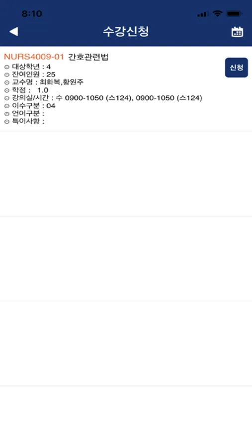 - 공지사항 : 수강신청 관련 공지사항 조회