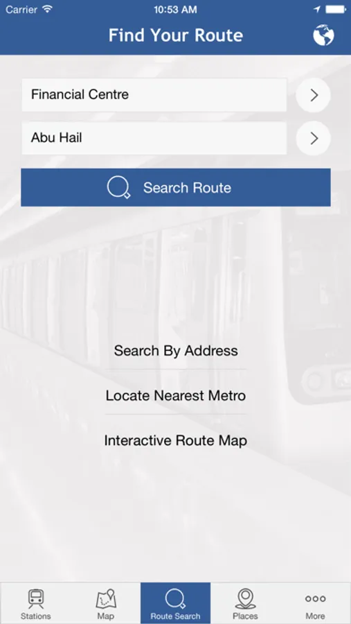 • Route Search - Provides fare information between two station, total time, number of stops, and number of switches between the intermediate stations.