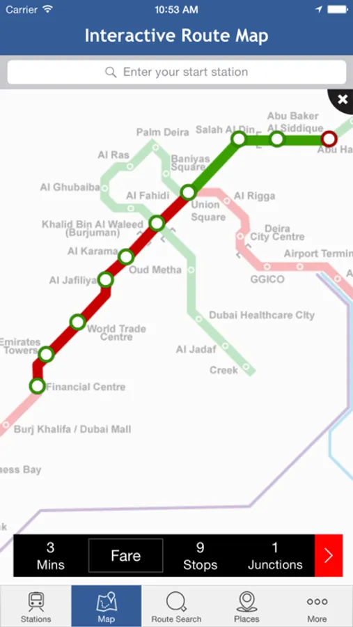 "Dubai-Metro" by FINOIT is an effort to append convenience and flexibility to National/International tourists and proud Dubai people by providing essential information related to Dubai Metro System as well as of Dubai. It is an offline application, which once installed, provides all the information of Dubai Metro and much more. It has been designed with a very user centric approach, with some of the most updated features like "Route search", "search by location", "search by address", interactive metro map to calculate fare and time from station A to station B, map, category wise segregated places list of Dubai zone, line information, detailed information of individual stations.