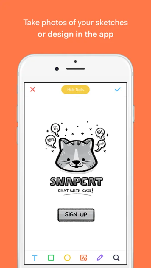 Design your app with our design tool with millions of free stock photos, fonts and icons. Or take photos of your pen and paper sketches!