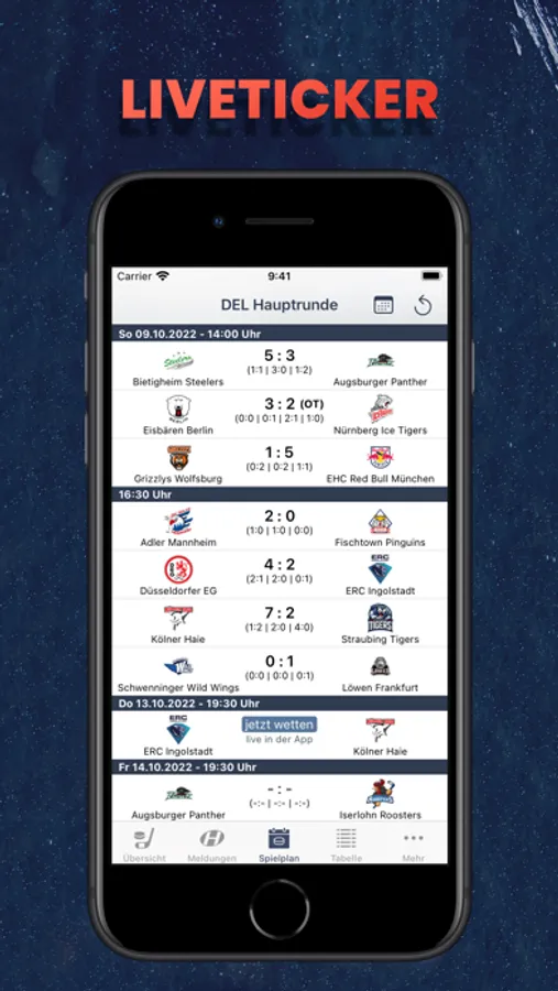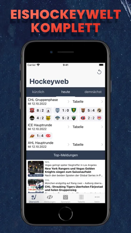 Erlebe die Spieltage der DEL, DEL2, Eishockey Oberliga, NHL und CHL live auf deinem iPhone oder iPad und sei mit unseren Push-Mitteilungen stets über Tore, Drittel- und Endergebnisse sowie aktuelle Meldungen informiert.