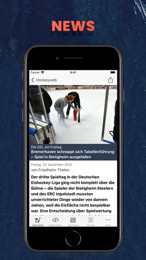 „Hockeyweb - die Eishockey App“ ist die Anwendung für das beliebte Eishockeyportal Hockeyweb.de.