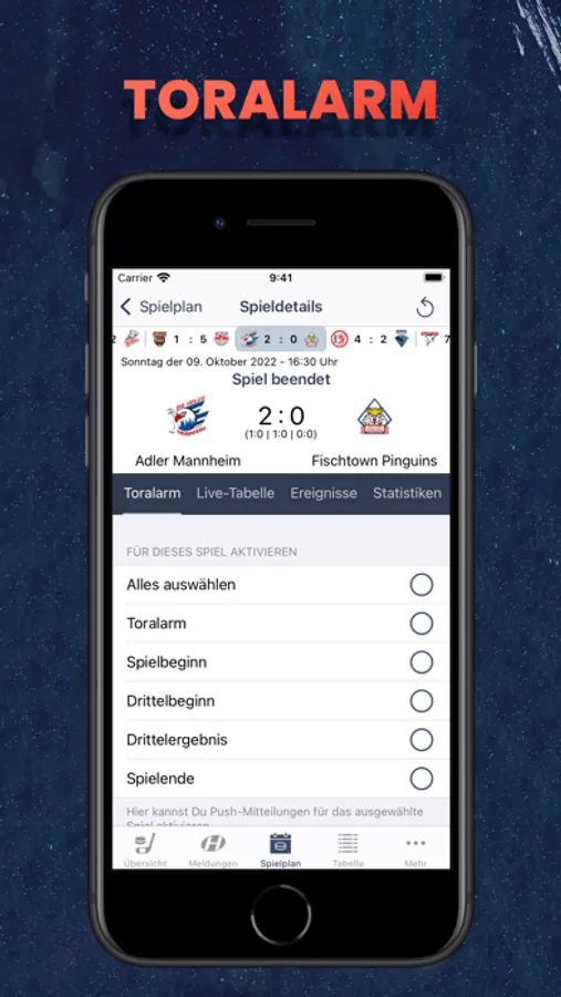 • Push-Benachrichtigungen (Tore, Drittelergebnisse und Endergebnisse) *