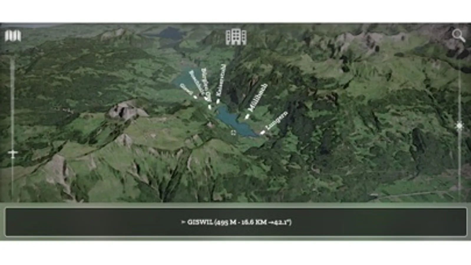 It reconstructs your surrounding landscape with accuracy and displays all peaks, towns, cities, places, lakes, passes, glaciers, mountain huts, ...