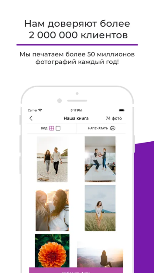 Заказывайте фотоподарки, создавайте книги или настоящие картины из снимков на телефоне.