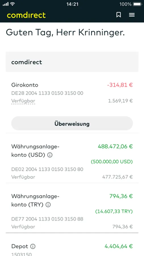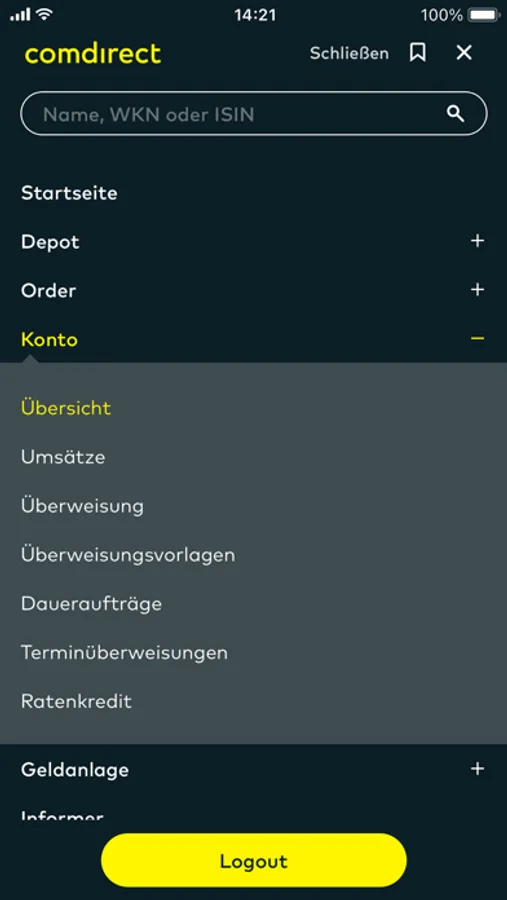 • Zugriff auf alle comdirect Konten und Depots möglich