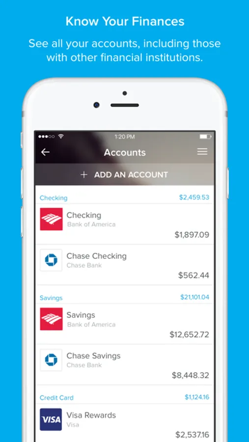 • Manage all your financial accounts in one place (checking, savings, credit cards, investments, and retirement)