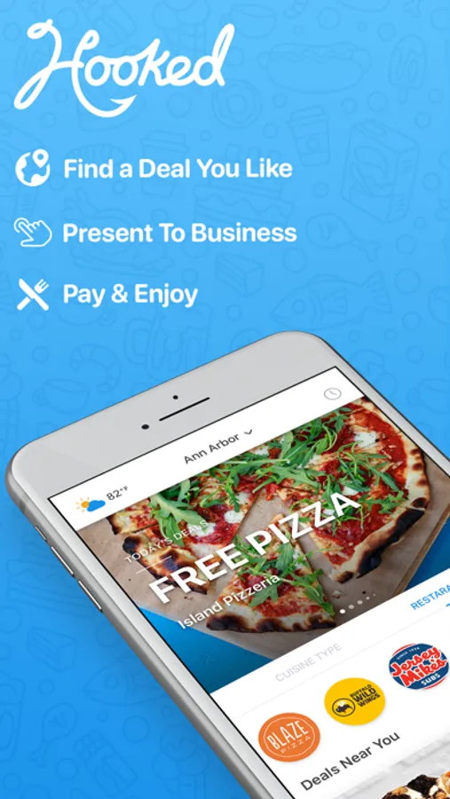 Hooked is a free app that provides you with 100s of exclusive deals every day from the top restaurants & bars around you!