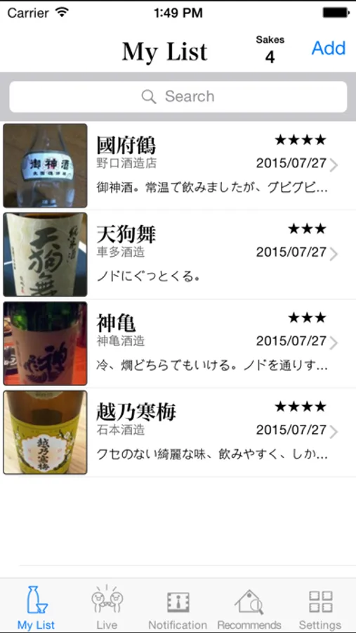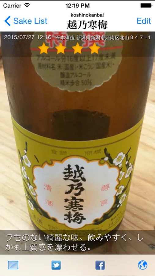 Sakenote is an app that documents your encounters with delicious Japanese sake.