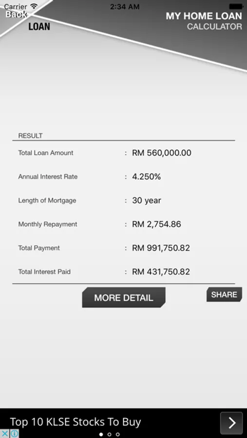 Malaysia Home Loan Calculator is designed for Malaysia home buyers or foreign property investors based on the latest rules and regulations in Malaysia. It is the first all-in-one offline home loan calculator for Malaysia, which includes loan repayment calculation, amortization schedule by year and month, legal fee calculation, Sales and Purchase agreement and loan agreement stamp duty calculation and EPF withdrawal calculator. It also provides the latest property news for reference.