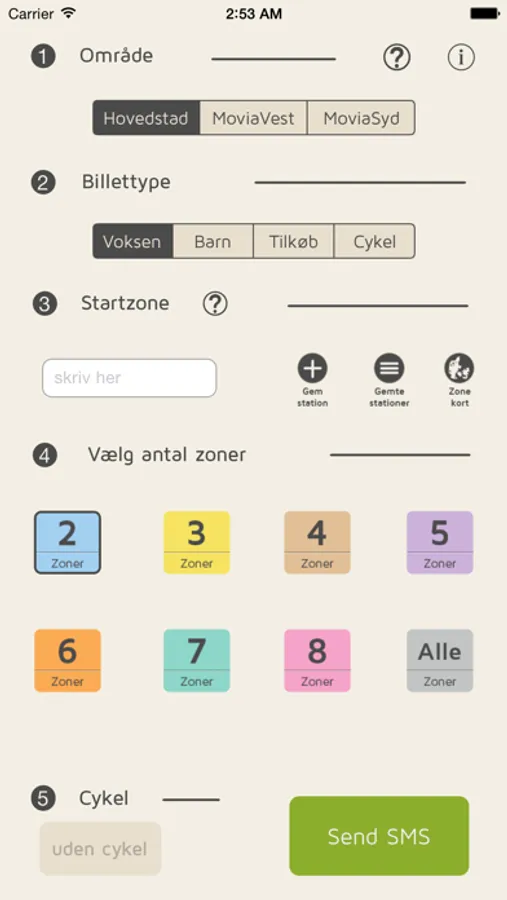 Denne app hjælper med at købe en SMS billet til dig som skal bruge bus, tog og/eller metro i hovedstadsområdet, Movia Vest og Movia Syd.