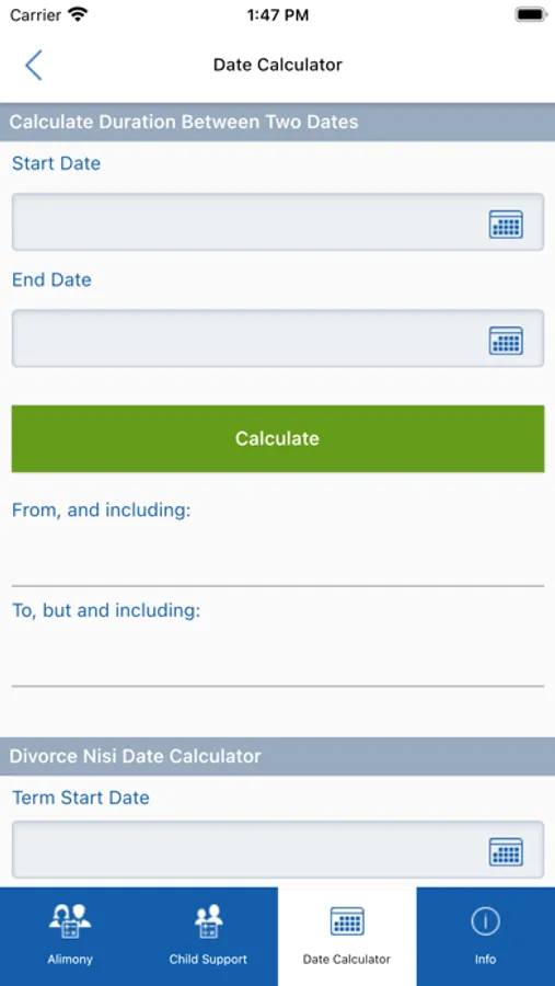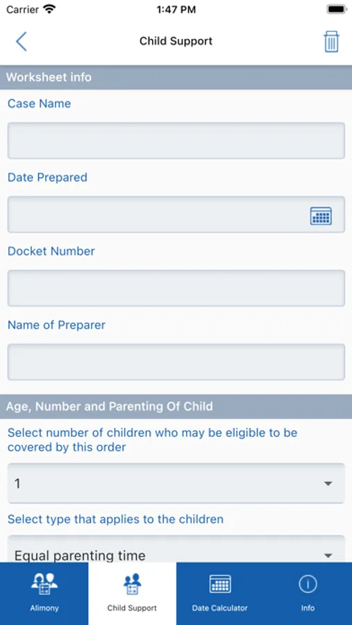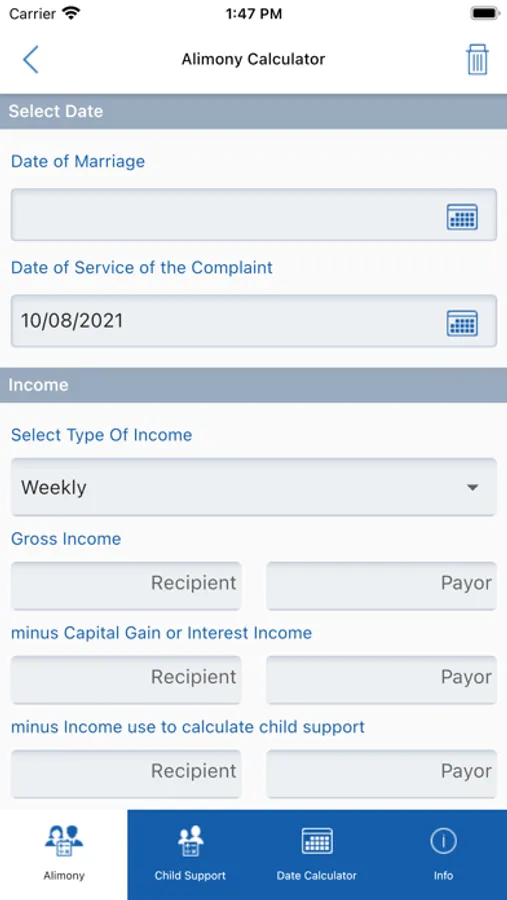 The Alimony tab of the app will allow you to calculate how long alimony payments will last, how much alimony is to be paid, and other possible alimony types besides the “general term” alimony.