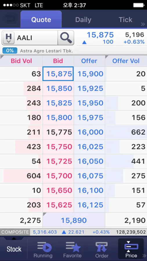 Running Trade, Quote, Matched dimana semuanya real-time.