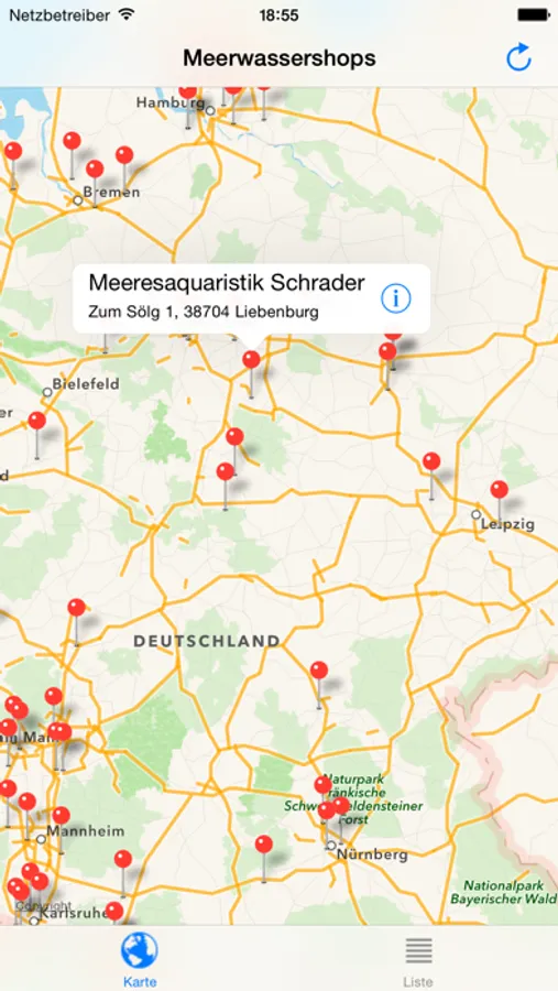 Mit dieser App kannst du sehen, wo in Deiner Umgebung ein Fachgeschäft für Meerwasseraquaristik zu finden ist.
