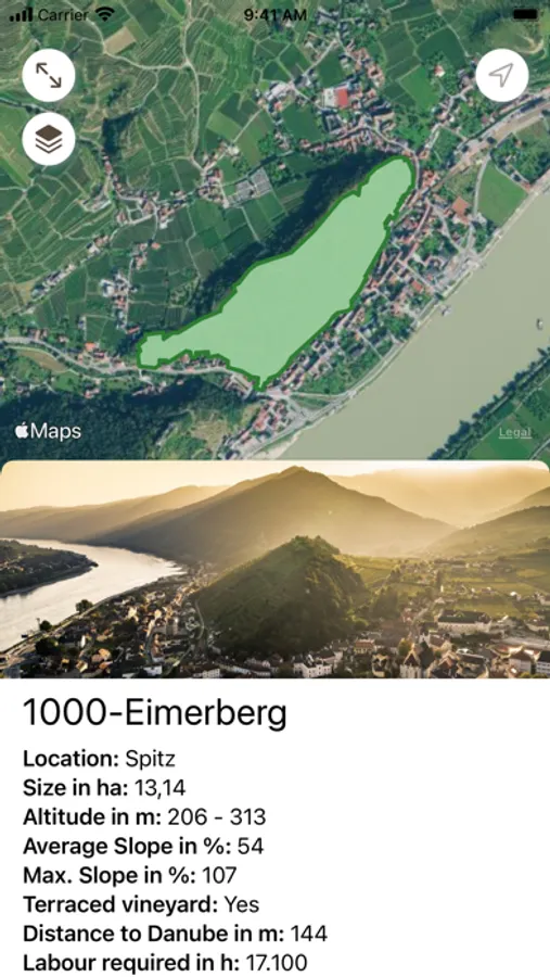 •Displaying all vineyards of the Wachau on a satellite or a topographical map
