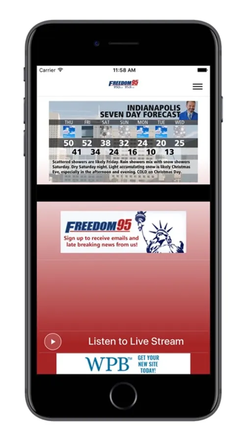 Freedom 95 - 95.9 FM and 950 AM - is a conservative talk radio in Central Indiana that hosts popular nationally-syndicated talk shows like Sean Hannity, Dave Ramsey, Laura Ingraham, Michael Savage, Mark Levin and more... Listen live with our FREE app anywhere from your mobile phone or tablet, hear podcasts, and get daily news feeds. The FREE app features advertising information and a signup form to receive station news and chances to win prizes. Support the radio station and the businesses that advertise on the station that bring you the hosts you love.