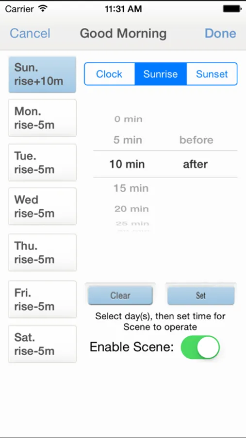 •Use the app’s built-in timer feature and set your motorized shades to open or close… day or night… all week long.