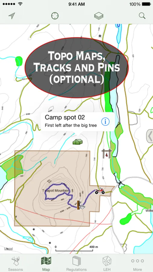 Offline topographic maps and other mapping goodies available by In-App Purchase.