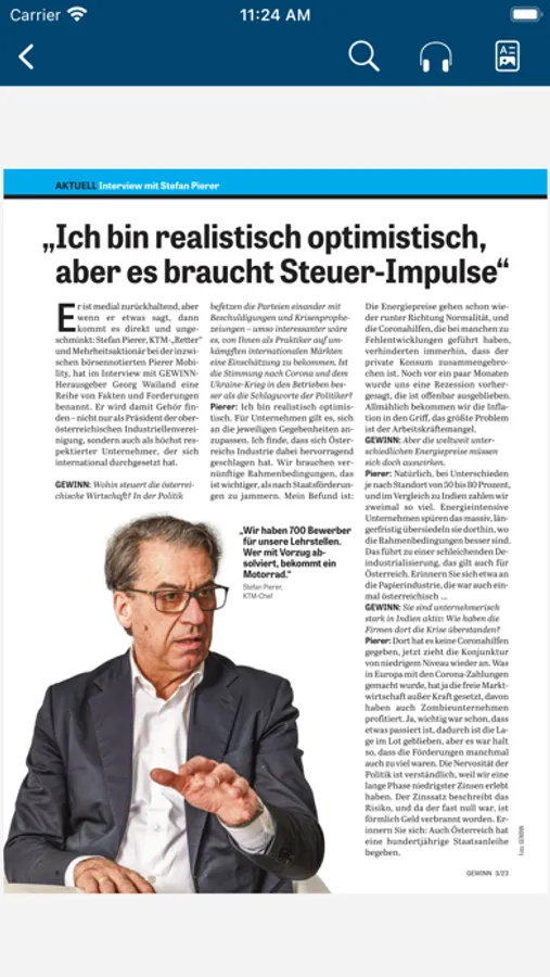 • Lesen in der PDF-Ansicht im Layout des Originals oder in der für mobile Engeräte optimierten Artikelvollbildansicht