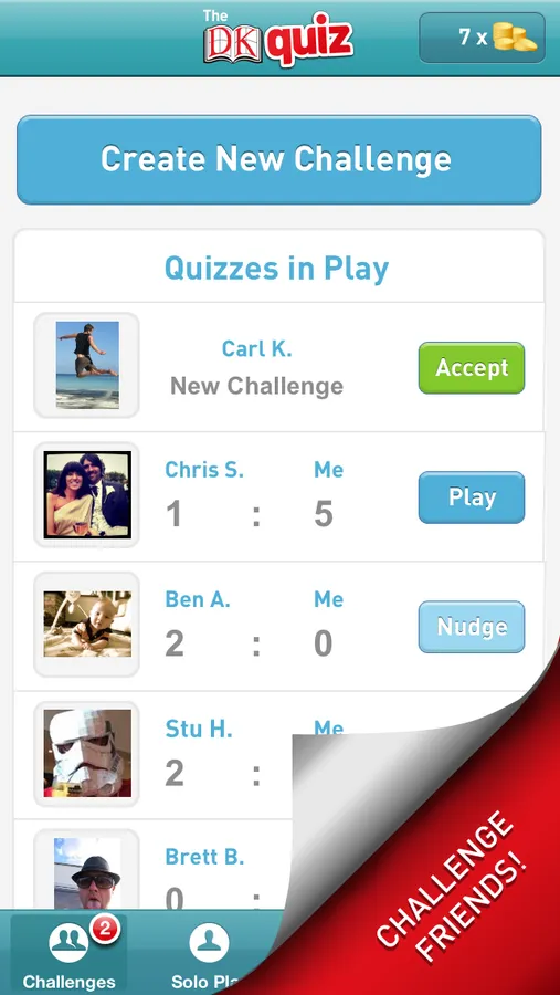 Love quizzes? Feel like a challenge? Test your knowledge with DK’s Quiz app and play thousands of questions for free. There is a quiz for you whether you love music, film, history, food, travel, insects, inventions, plants, sports, animals. Play solo and check out your score on the leaderboard to see how you rank overall, by category and against your friends. The addictive turn-based challenge mode allows you to go head-to-head with friends by entering their user name or connecting through Facebook.