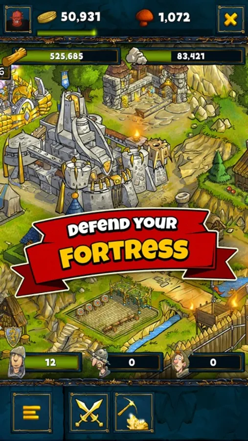 A fortress allows you to mine powerful gems and train soldiers, archers and mages. Make sure to strategically build different aspects of your fortress to reap the best rewards and have solid defenses to protect your fortress from enemy attacks.