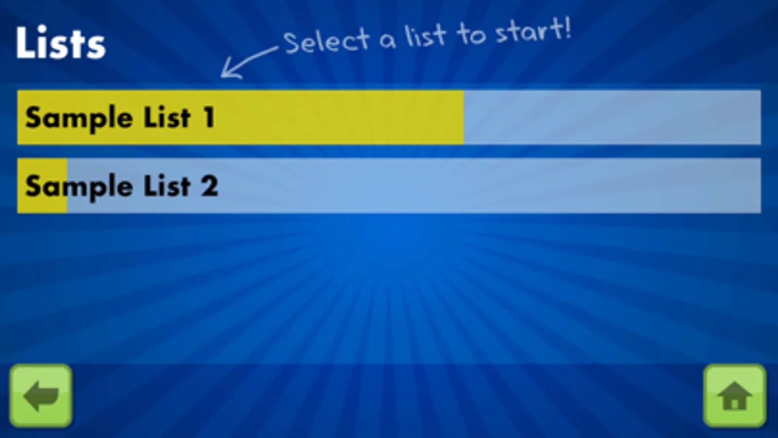 At the end of each practice cycle, Spelling Star provides feedback for the entire list and provides the option to immediately practice it again. Spelling Star also provides a quick view of progress towards list mastery within the list selection screen. Spelling Star makes it easy to see how close spellers are to mastery.