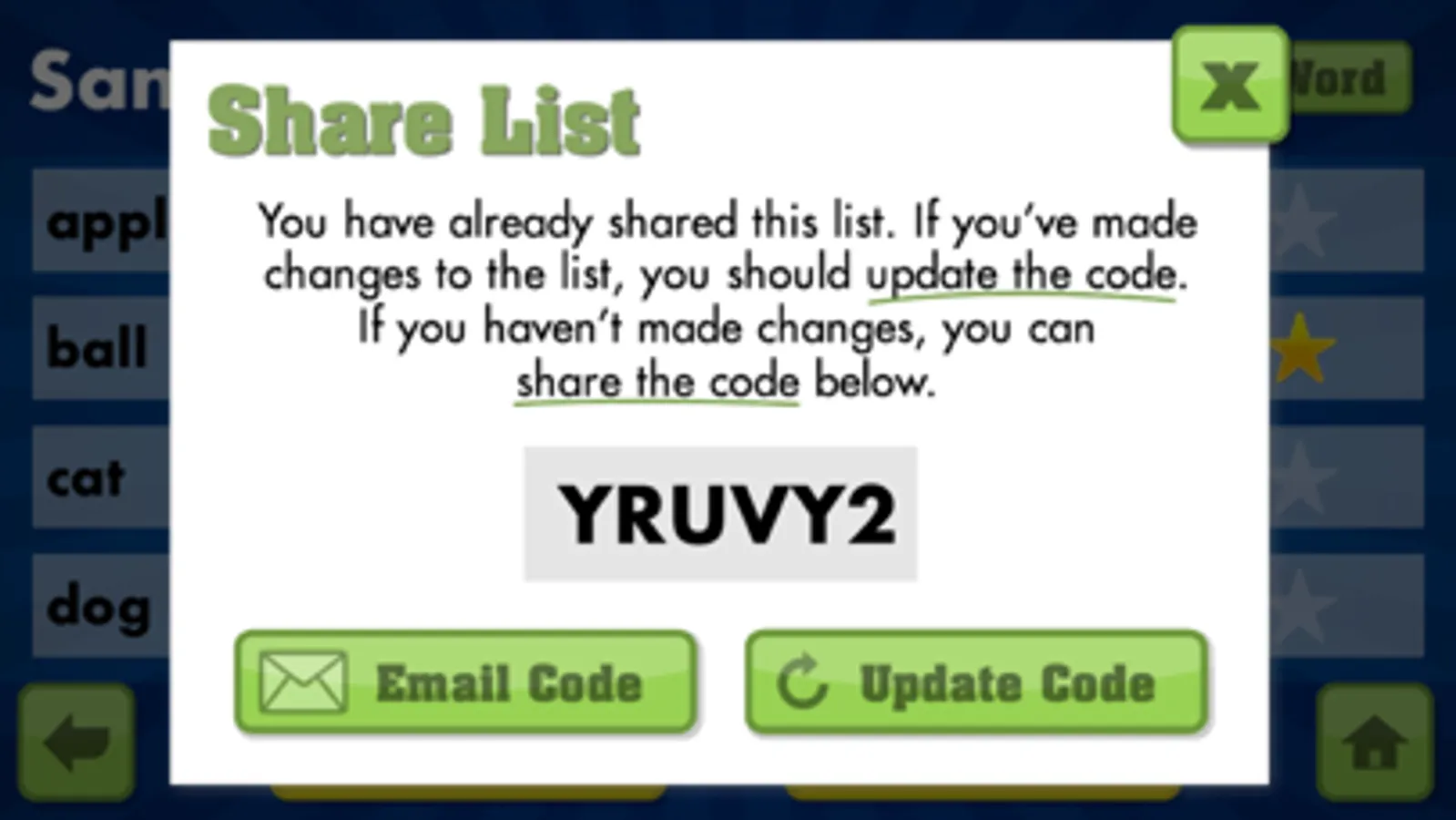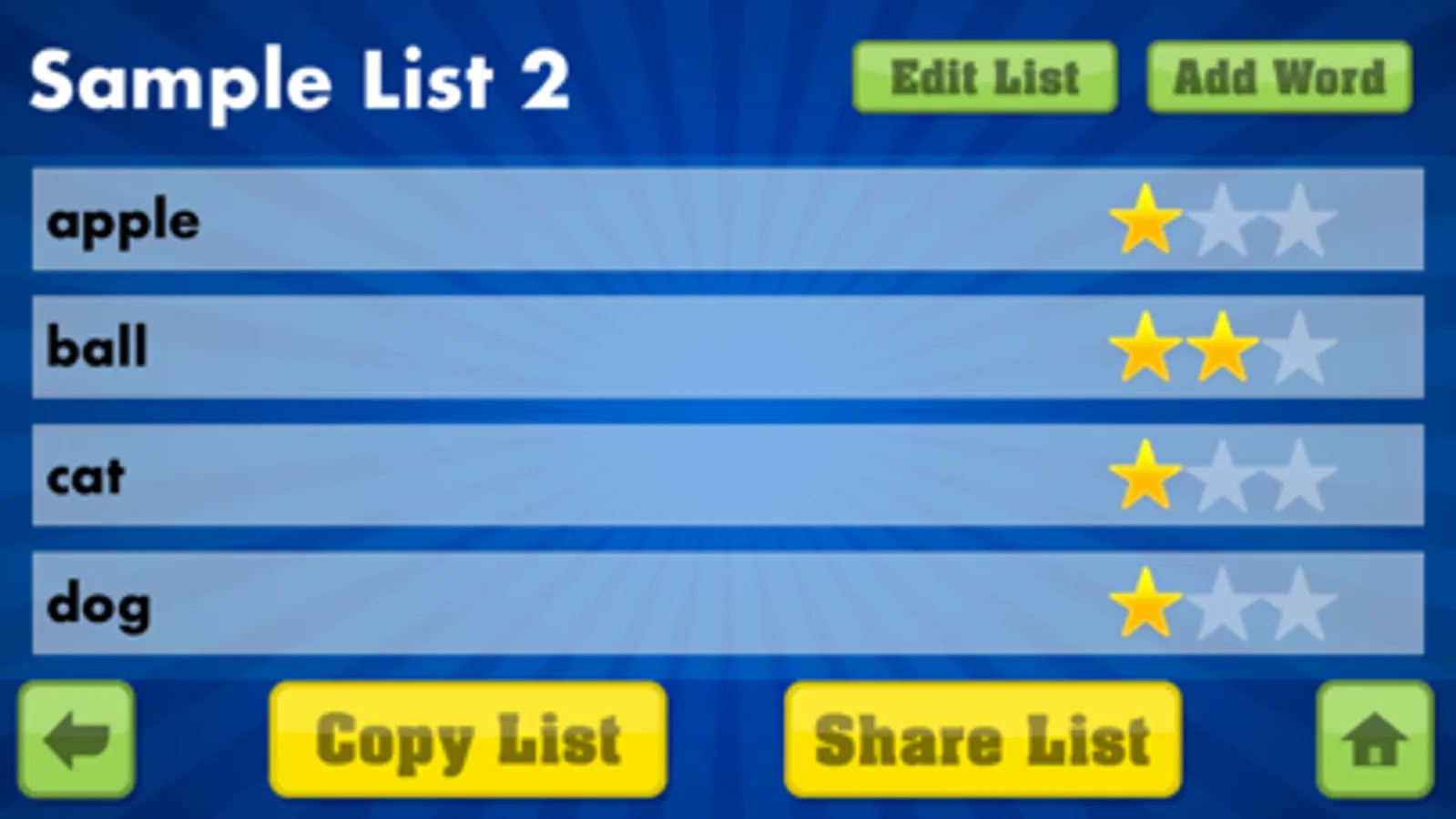 ● Share Lists - create lists on one device and share them with anyone else that has the Spelling Star app.