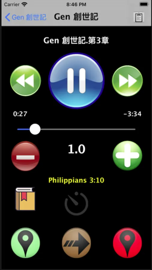 睡眠功能,可設定要播放的(章)次數。今日讀經進度,方便完成一年讀經一遍。可下載音檔,方便離線播放。