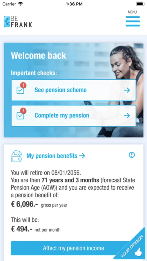 With BeFrank you have always your pension in your pocket. Handy if you want to do a quick check on your pension.