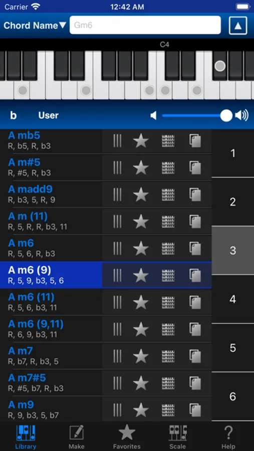 And Guess Chord Name function suggests chord names by decided chord form or selected notes on 1 octave keyboard.